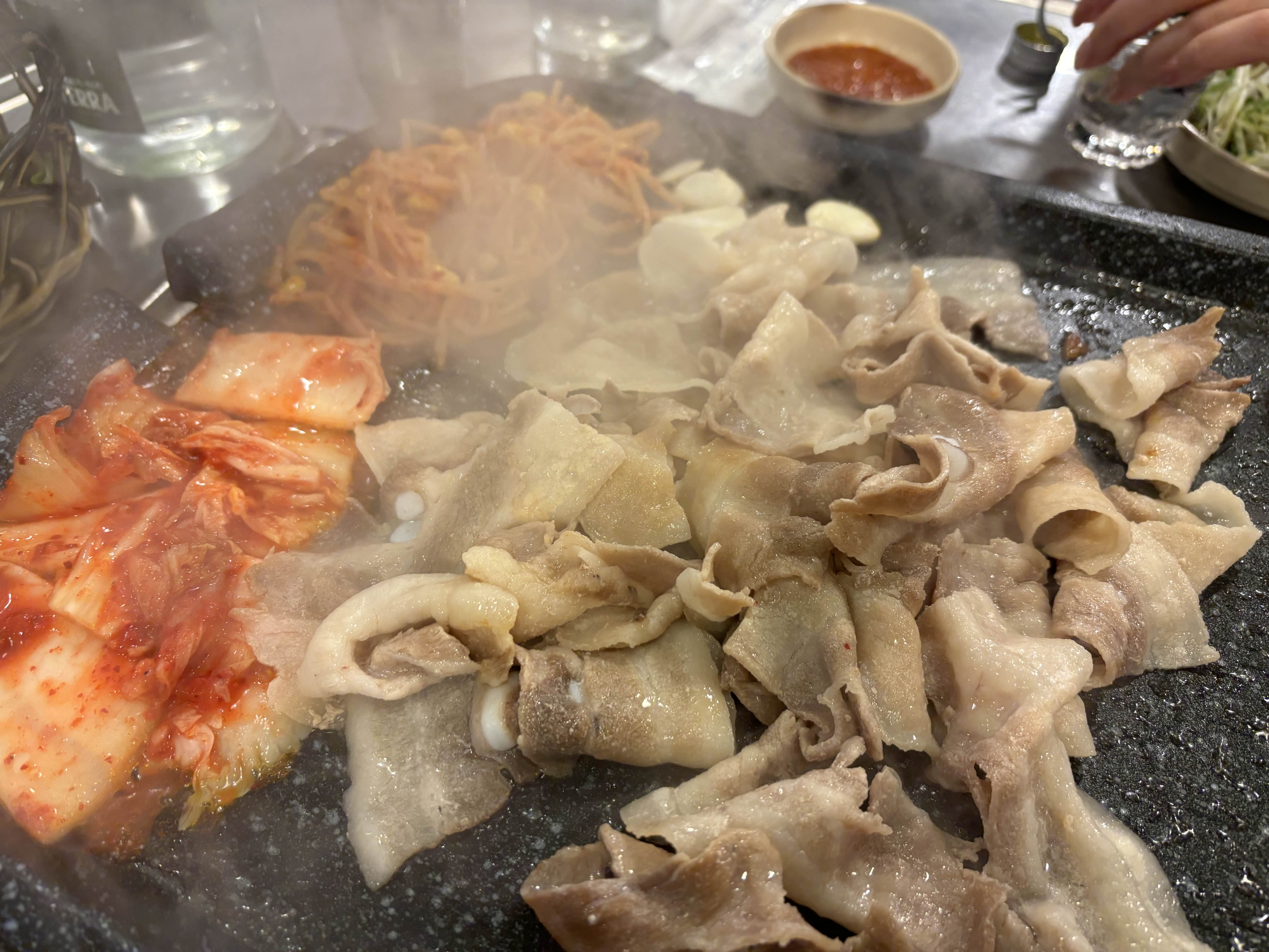 대패 옆에 김치, 콩나물 올려서 구워주면