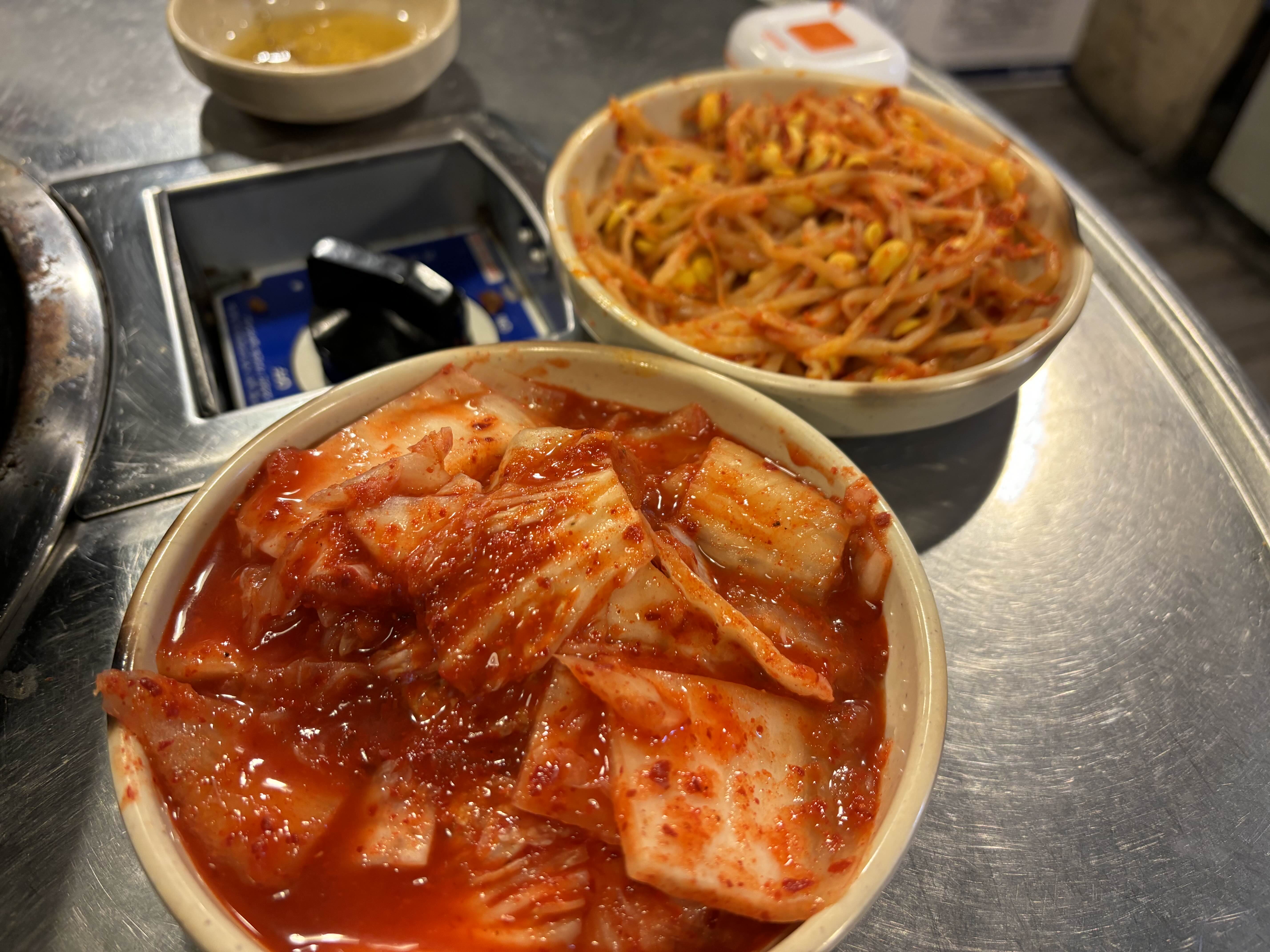 기본 반찬 콩나무무침, 김치, 파채
